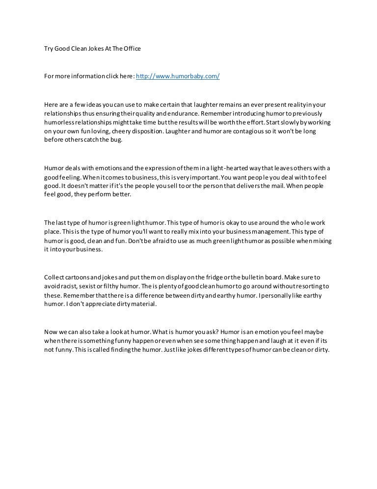 Really Funny But Clean Jokes - 105 Corny Jokes To Send To Friends Thought Catalog - Funny jokes told, very funny jokes, one liners short, clean jokes and puns that will get you a laugh every time.. This morning on the way to work i wasn't really paying attention and i drove into the back of a car at some traffic lights. You haven't changed a bit.steve hunt (steve cochran): This article continues on the next page! I lost my mood ring the other day. It took me a whole year to write a book.